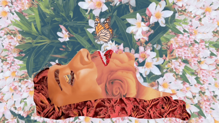 Golden Lips & Blue Flowers